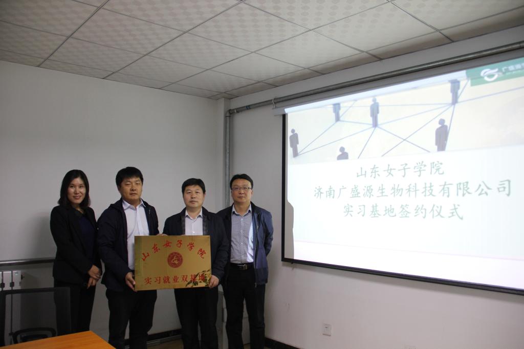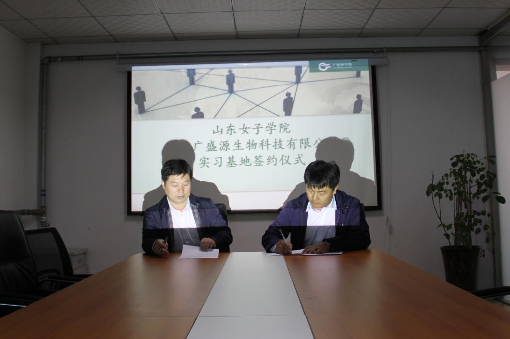 10月19日下午,外国语学院党支部书记董玉新、副院长吕建国及相关负责人前往位于长清的济南广盛源生物科技有限公司,就双方合作及建立实习就业基地等事宜与总经理林洪军进行了友好洽谈。