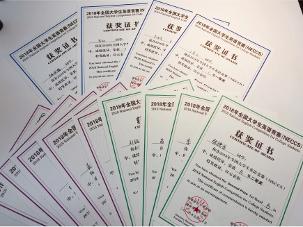 5月20日,2018年全国大学生英语竞赛决赛在山东师范大学圆满落幕。这次比赛中,我校外国语学院的鲁敏、张雨露同学,经济学院的王晨羽、李瑞雪同学与旅游学院的栾晓慧同学,凭借出色的发挥,获得了全国一等奖的好成绩。这次比赛中,我校参赛同学共获得全国一等奖5个、全国二等奖26个、全国三等奖44个,充分展示了我校英语教育的优秀成果和学生的良好精神风貌。