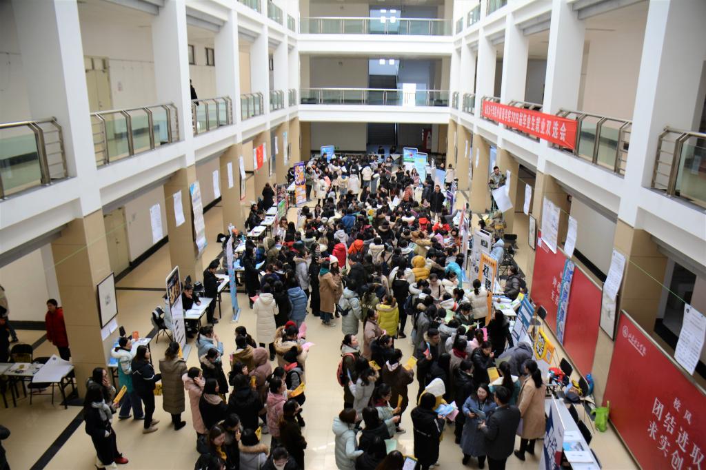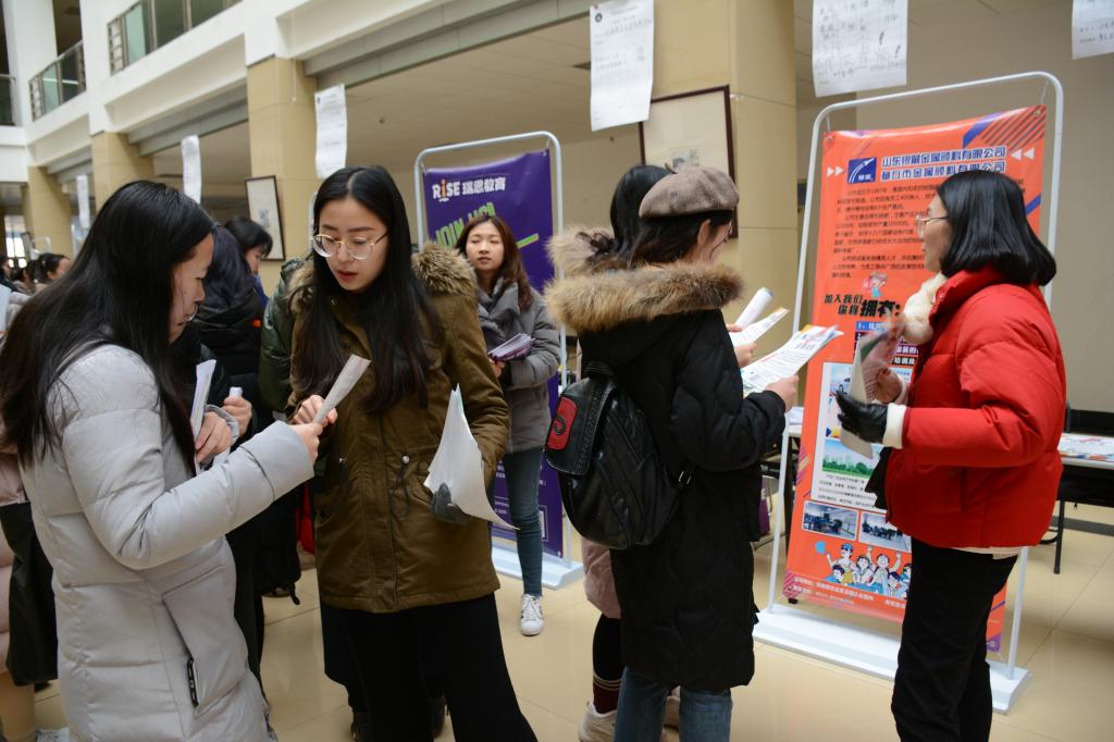 1月5日上午,外国语学院2019届毕业生就业双选会在博文楼一楼大厅举行。此次招聘会共吸引了40余家单位的参与,我院2019届毕业生200余人参加招聘会。学校招生就业处处长任晓剑、我院院长赵淑容、党总支副书记耿华等领导也莅临此次招聘会,与用人单位以及毕业生面对面交流,了解用人需求和毕业生就业需求等情况。