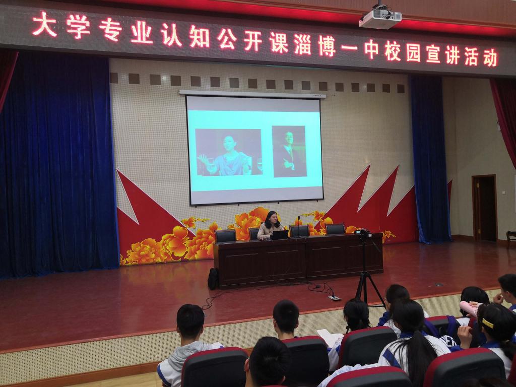 4月1日,在淄博市的宣讲活动有来自山东大学、山东财经大学、山东农业大学等7所高校的9名教授专家参加,涉及七大学科门类的八个专业。我院英语专业教研室主任吕婷老师承担了文学类的公开课,在临淄中学、淄博一中分别介绍英语专业。