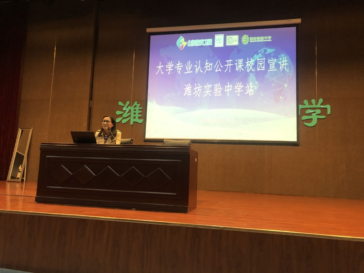 10月19日-20日,外国语学院副院长曹翠红参加山东教育电视台“大学专业认知公开课校园宣讲”,先后走进潍坊实验中学、潍坊中学进行了五场专业宣讲。