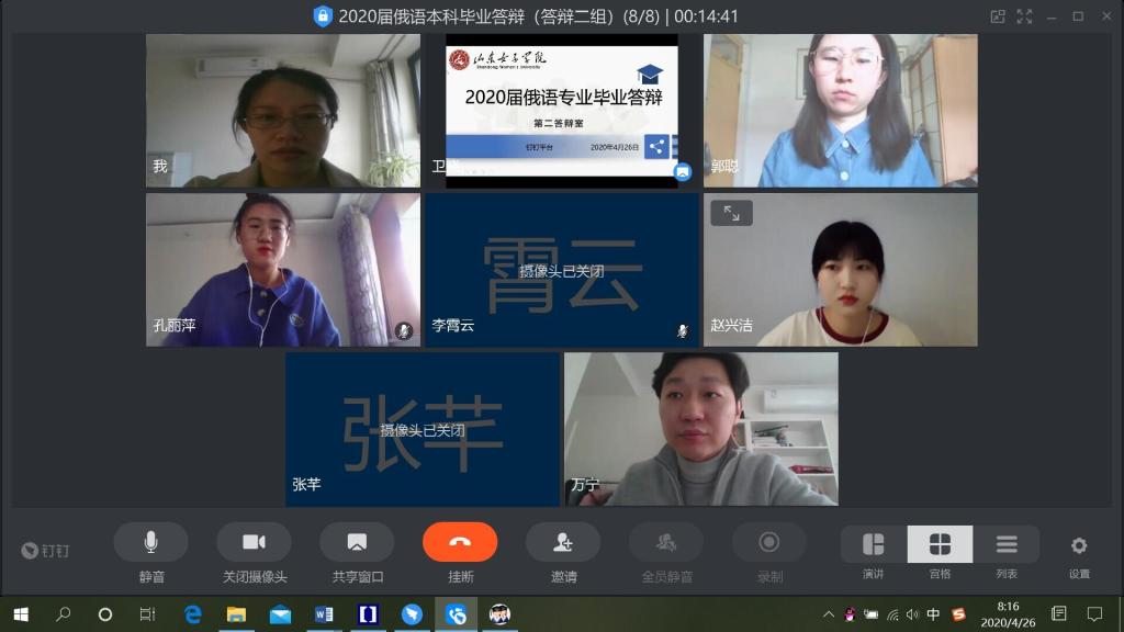 为确保首次线上答辩顺利进行,外国语学院领导、学院督导、所有论文指导教师全参与,许多答辩教师为保证安静的答辩环境专门赶到长清校区办公室进行答辩。整个论文答辩过程严格按照答辩程序和要求,平稳有序、顺利完成了相关工作。