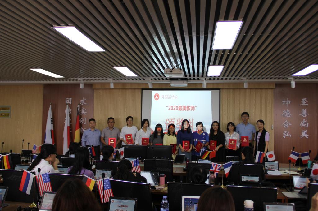 整个活动由“专题演讲”拉开序幕,以支部为单位推选出的五位教师代表张歆、王欣、张燕燕、马小雪、孟广磊,结合《习近平总书记教育重要论述讲义》内容的学习分别从各自的岗位工作出发,讲述对师德的理解、对教师生涯的感悟和为党育人为国育才的责任使命。自上海外国语大学访学归来的两位教师申先玉和刘瑶分享了教学经验和访学感悟,给在场的教师们带来了崭新的教育理念和丰富的教学素材。随后,获评校级“2020最美教师”的吴兆丽老师也发表了获奖感言,传达了教师的心声和对职业的赞颂。之后,学院表彰了苏易安、党长燕等10位“2020年外国语学院最美教师”,他们在抗击新冠肺炎疫情和在线教学等工作中都有突出表现。最后,全体教师在“做四有好老师”的倡议书上郑重签名,表达了树立高尚师德师风、无私奉献教学岗位的决心和职业情操。