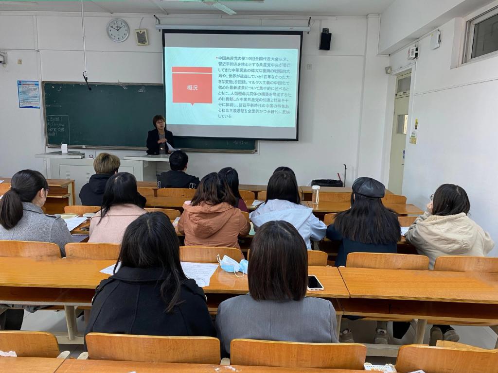 日语专业岳小冬老师用中文和日语两种语言,向大家讲解了《习近平谈治国理念(第三卷)》中我国的社会主义核心价值观、中央八项规定、四项基本原则、四个自信、“三步走”等战略目标。与学生们一起对书中的理念思想进行了探讨学习,帮助大家进一步认识到我国当前的国情以及作为青年应担负起的时代责任和历史使命,鼓励学生用习近平总书记的系列讲话精神武装头脑,立足大局大势,明确未来方向,自觉将个人成长与国家事业结合起来,为实现“两个一百年”的奋斗目标做出应有贡献。