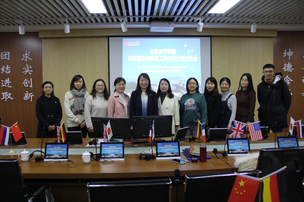 2020年12月10日学校举行了2018-2020年学科建设与科研工作会议,根据学校相关工作安排,外国语学院组织各教研室全体教师认真学习此次会议相关文件精神,并以教研室为单位开展前期讨论。12月17日下午,外国语学院在求实楼503举行分组讨论会,学校副校长贺兴利、科研处成果科科长张春梅以及外国语学院全体教工参加了此次会议。来自7个教研室的8位教师从各自专业切入,分别从前期成果、存在问题、今后举措等几个方面,探讨了各自专业的专业建设、学科建设与教师发展等相关问题。
