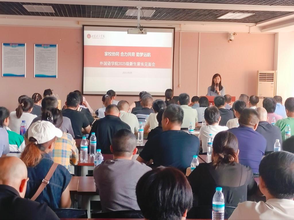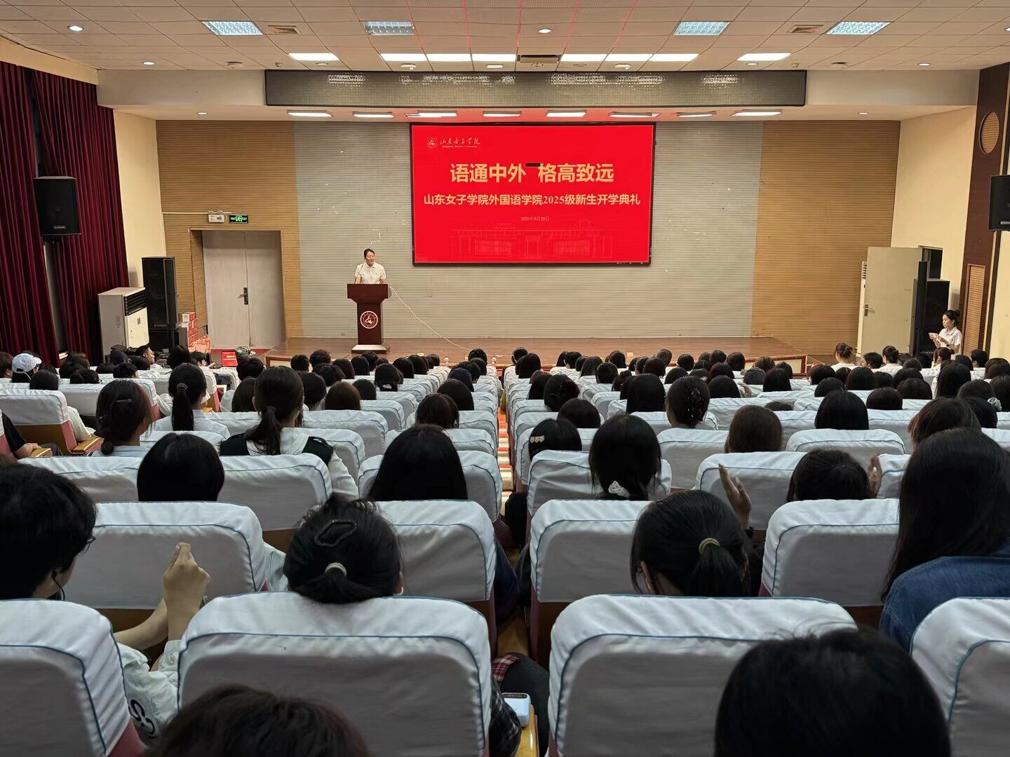 9月28日晚,外国语学院以“语通中外,格高致远”为主题的2025级新生开学典礼暨思政大讲堂在图书馆一楼报告厅隆重举行。学院领导班子成员、辅导员、新生班主任以及全体2025级新生齐聚一堂,共同迎接大学生活的崭新起点。典礼由学院党委副书记主持。